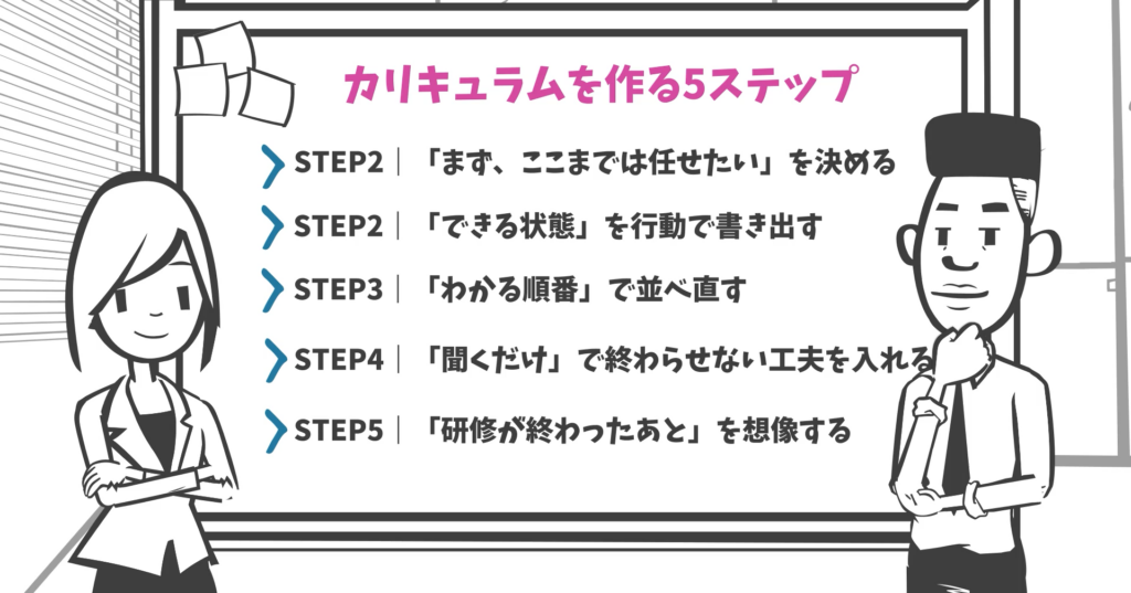 この記事では、現場で使える・続けられる新入社員研修カリキュラムの作り方を、5ステップに分けて順番に噛み砕いて解説します。